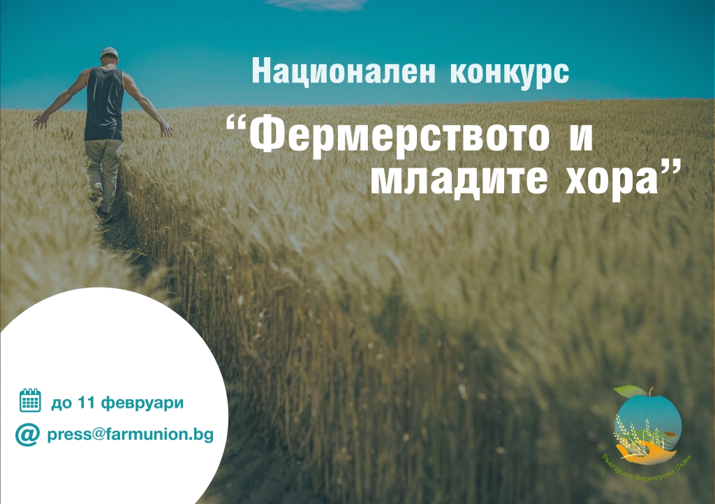 В навечерието на втората годишнина от създаването си, Български фермерски съюз организира Националния конкурс „Фермерството и младите хора“. Тази година той е насочен към ученици в гимназиален етап на обучение и студенти от цялата страна. Предвидени са парични и предметни награди. Всички участници ще получат сертификати за участие.