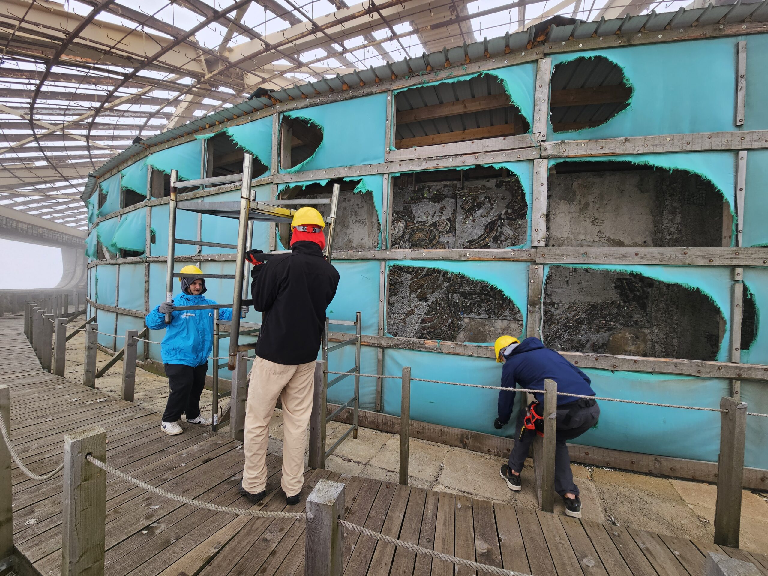 В периода 2020-2022 г. международен екип от близо 100 души, сред които реставратори, строители и доброволци, осъществи мащабни мерки за опазване на мозайките. Реставраторски екип стабилизира мозайките, строители изградиха временни защитни навеси, а доброволци монтираха защитни текстилни платна от здрав, лек, устойчив и водонепропусклив текстил. Навесът и неговите текстилни платна спират достъпа на вода и заледяването на мозайките, като по този начин бе премахната основната причина за тяхното разпадане. Благодарение на успешните мерки и навременната поддръжка, разрушителните процеси са успешно спрени и от 2020 г. насам не се наблюдават никакви нови разрушения.