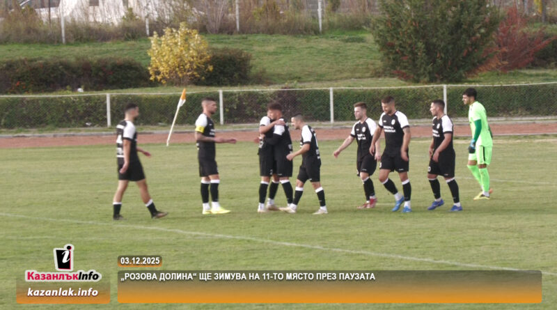 ФК „Розова долина“ приключва полусезона със 7 победи, 4 равенства и 7 загуби. С 25 точки „Розова долина“ се позиционира на 11-то място в подреждането след 19-ия кръг, в който обаче футболистите от града на розите почиват. Във временното класиране със същият актив точки са и футболистите на „Спартак“ от Пловдив, които изпреварват розите с два гола повече вкарани във вратите на съперниците. Стартът на зимната подготовка за състава е на 7 януари, съобщи старши треньора Атанас Апостолов.