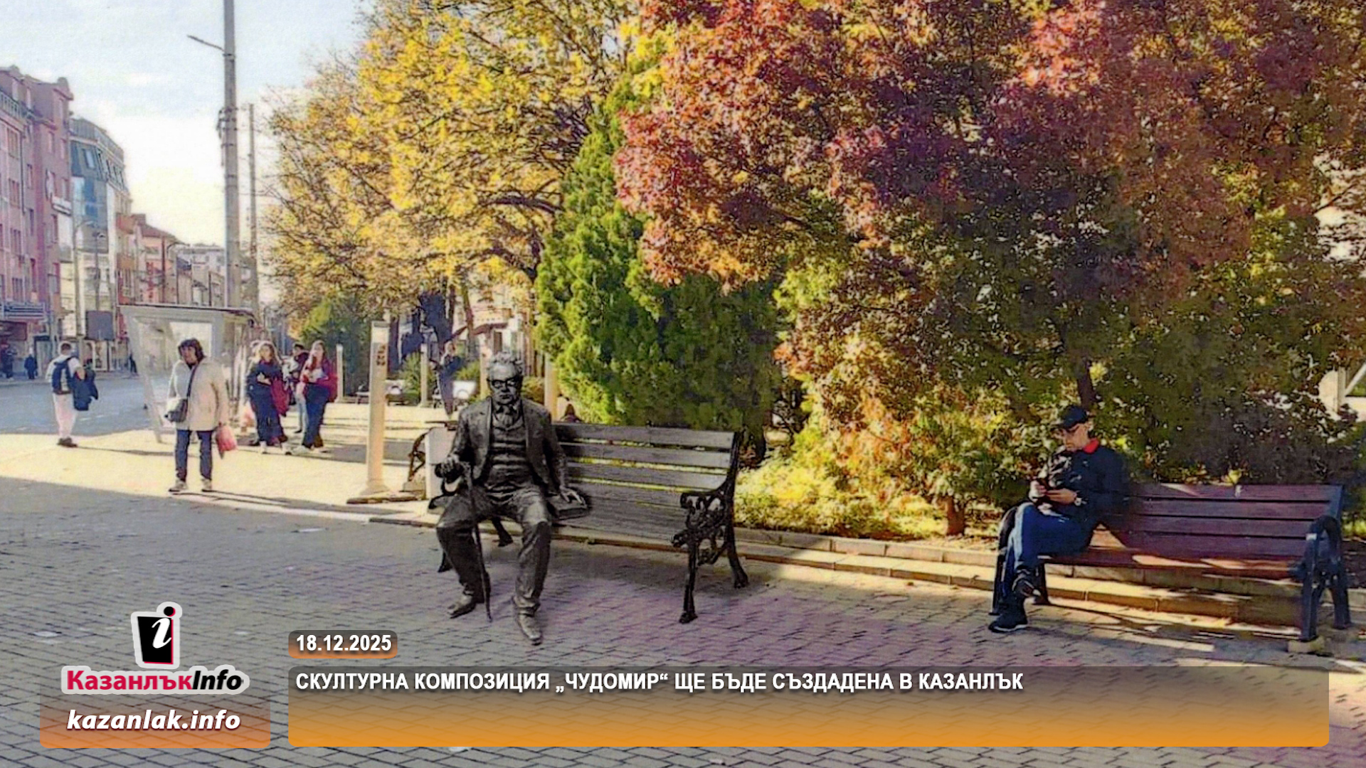 Общинският съвет в Казанлък даде съгласието си да бъде създадена скулптурна композиция „Чудомир”. Съветниците гласуваха с да на предложението на Мария Цонева. Композицията ще бъде поставена в централното градско пространство на Казанлък. Композицията ще представляваЧудомир в естествен ръст, седнал на пейка, който сякаш продължава да наблюдава живота в града и всеки момент е готов да извади скицника си, за да запечата съвременните нашенци. Средствата в размер на 87 хиляди лева, необходими за изработването и поставянето на композицията ще бъдат осигурени от бюджета на Община Казанлък за 2026 г., а при невъзможност, чрез набиране на средства в открита за целта дарителска сметка. Проектът за паметника на Чудомир е дело на казанлъшкия художник Иван Салабашев.