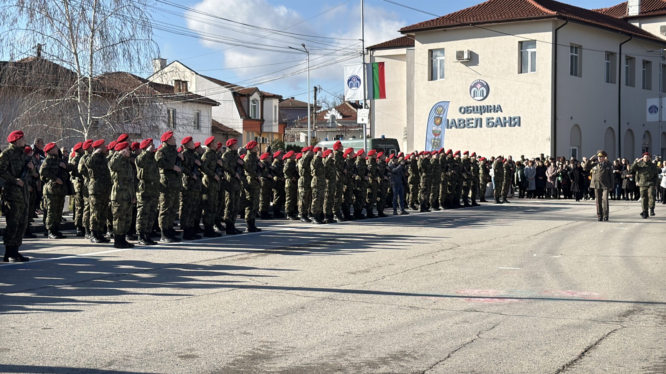 За мен е чест, че този тържествен акт се състои именно в град Павел баня, каза в словото си кметът Иса Бесоолу. Той добави, че това е важен и достоен момент, символ на отговорност и чест в служба на родината, и пожела на младите военнослужещи пътят им да е изпълнен със здраве и успехи.