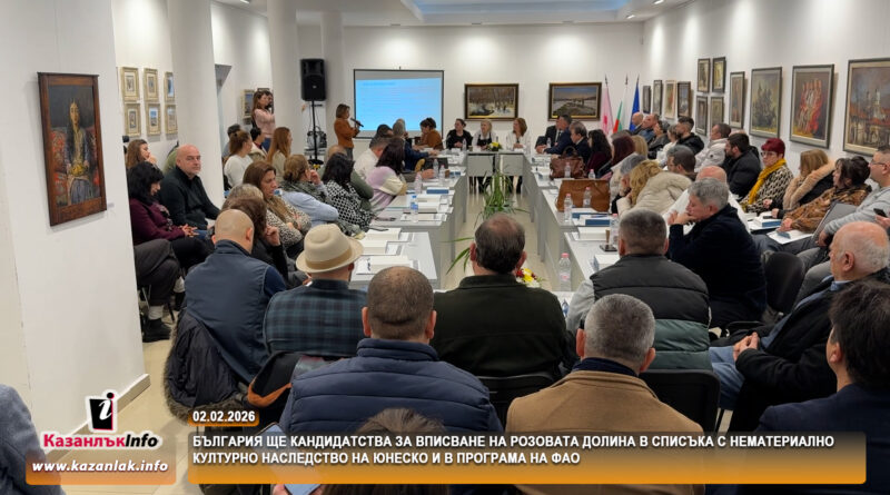 България ще подаде апликационни форми за вписване на Розовата долина в Списъка на нематериалното културно наследство на ЮНЕСКО и за регистрацията ѝ в Системите за селскостопанско наследство с глобално значение на Организацията за прехрана и земеделие ФАО. Това стана известно по време на дискусия между представители на държавната и местната власт, културни институции, розопроизводители и преработватели, проведена в зала „Иван Милев“ в Казанлък. Инициативата е съвместна между Българската национална асоциация „Етерични масла, парфюмерия и козметика“, Министерството на земеделието и храните и Община Казанлък.