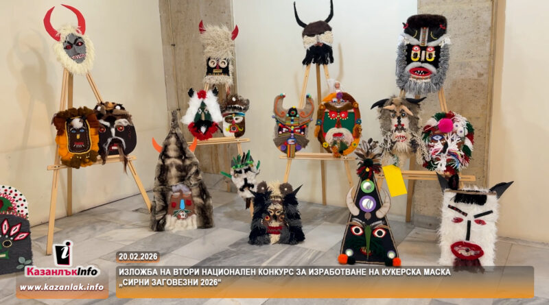 Изложба от Втория национален конкурс за изработване на кукерска маска „Сирни заговезни 2026“ беше открита в сградата на Община Казанлък. Експонирани са 300 кукерски маски, изработени от деца от 50 населени места в България. Организатори на конкурса са Основно училище „Д-р Петър Берон“ – с. Овощник и Община Казанлък, под патронажа на кмета Галина Стоянова.