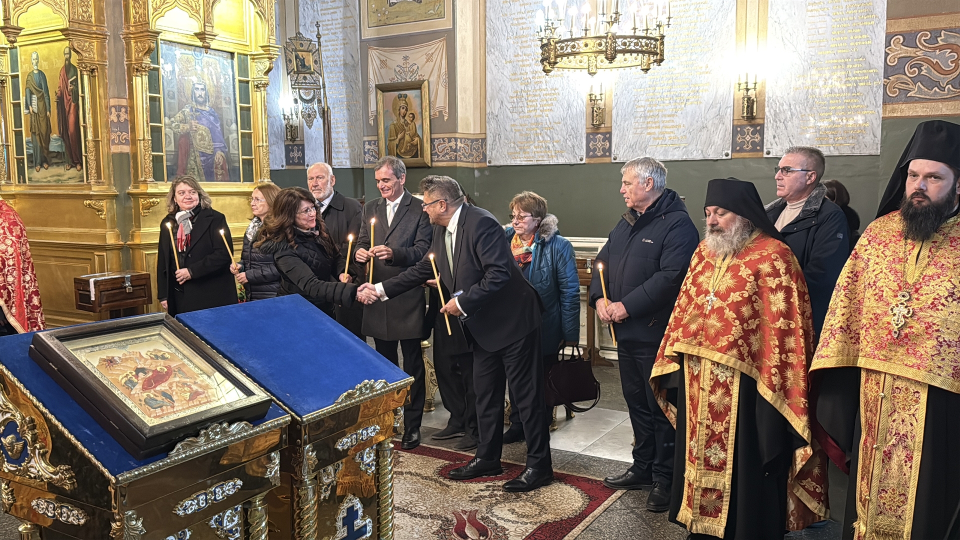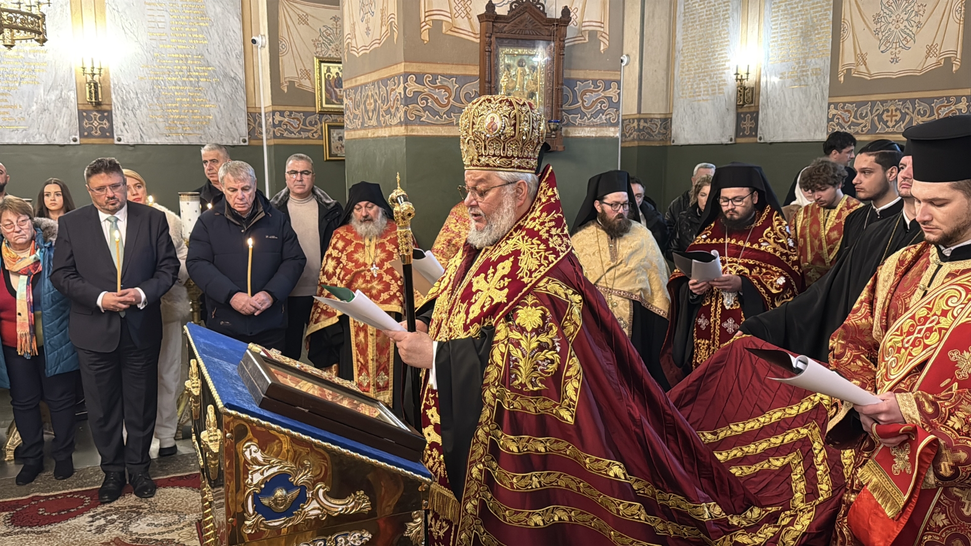 По неговите думи храм-паметникът „Св. Рождество Христово“ е светинята, която днес ни приютява под своя благодатен покров, носи жива душа, изтъкана от благодарност и молитвена памет. Той припомни, че в костницата на светата обител почиват костите на руски и български воини, а имената им са изписани върху мраморните плочи като свидетелство за тяхната жертва. „В тези свещени надписи се открива тиха духовна пъртина, достъпна единствено за сърца, изпълнени с признателност. По нея се възвисява погледът на душата към надземната перспектива на вечността, където благодарността се превръща в молитва“, каза митрополит Киприан.