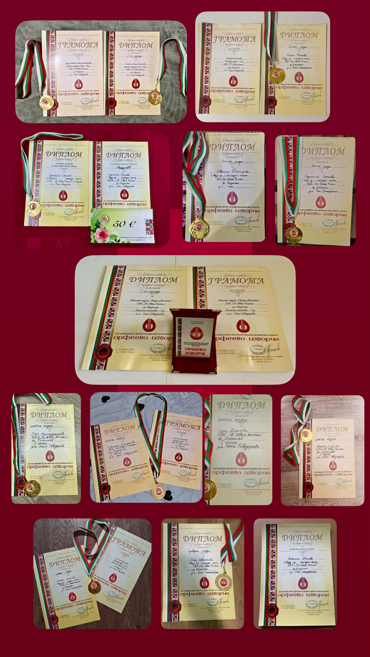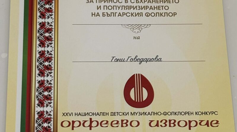 В оспорваната певческа надпревара, децата бяха в една група със сериозна конкуренция от музикалните училища и паралелки от цяла България. Въпреки това те се справиха блестящо и завоюваха призови места във всички възрастови групи. Специална и парична награда, и заснемане на видео клип спечели Кристина Парова, Трета възрастова група. Златен медал и видео клип бяха присъдени на Цветелина Иванова, с 1-ва награда и видео клип се отличиха и най-малките от ВГ “Пеещи звънчета”. Отново 1-ва награда и видео клип грабна дуетът на гласовитите близначки Сияна и Никол Кехайови Златен медал и видео клип, бяха присъдени и на Хрисия Джумева, Първа възрастова група. Златен медал и за Галена Николова Втора възрастова група, Златен медал получи и Ивелина Димитрова, Втора възрастова група. Златен медал и за Кристина Стоянова, Втора възрастова група. Златен медал- Рая Бакърджиева, Първа възрастова група. Златен медал, Теа Динева, Първа възрастова група. Златен медал, Никол Дучева Първа възрастова група. Сребърен медал получи Симона Стойнова от Втора възрастова група. Сребърен медал и за Дара Цветанова, Втора възрастова група. Отлично представяне за Ангелина Митева, Втора възрастова група. Грамота за принос в съхранението и популяризирането на Българския фолклор получи и Тони Говедарова, р-л на ВГ “Пеещи звънчета.